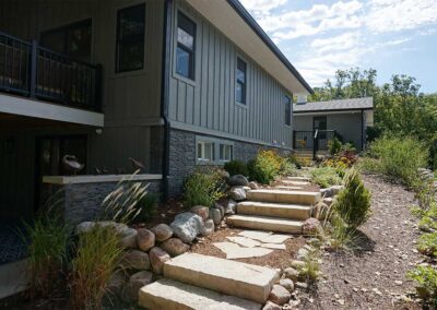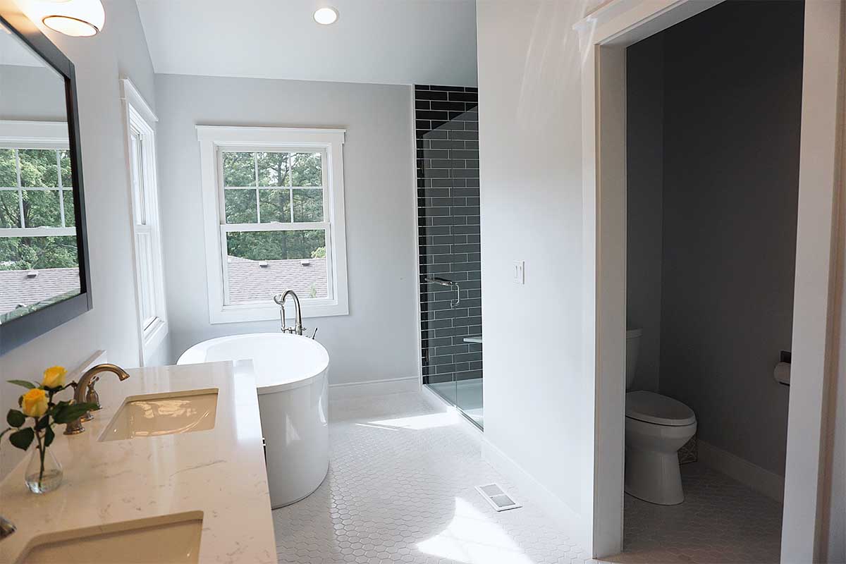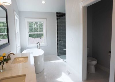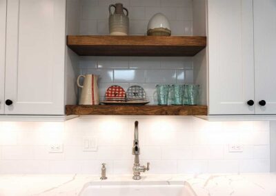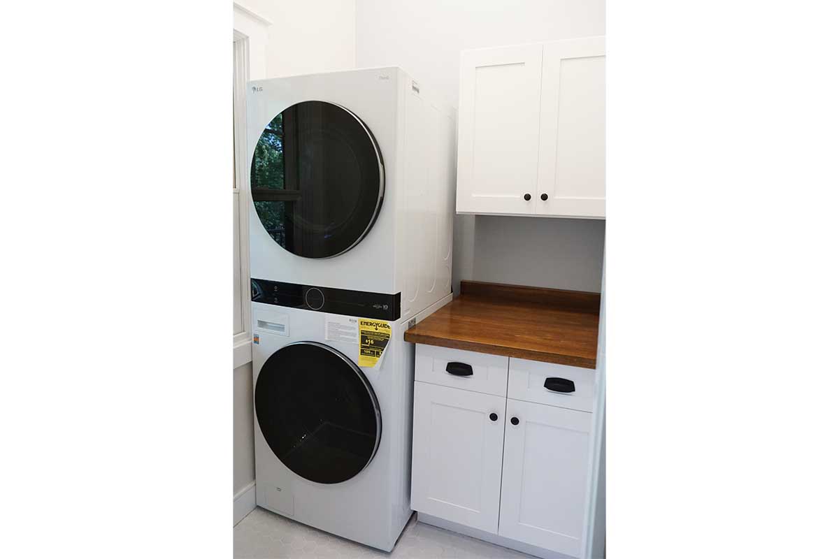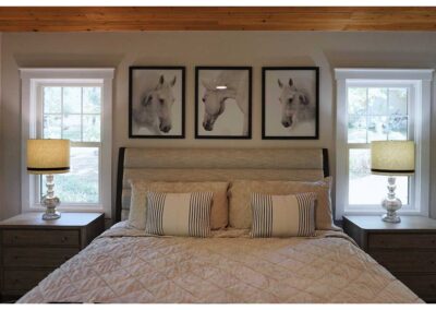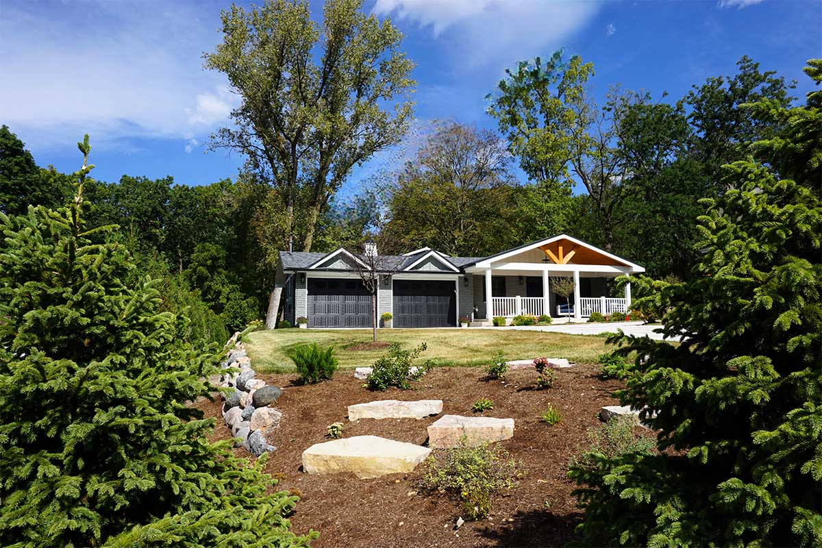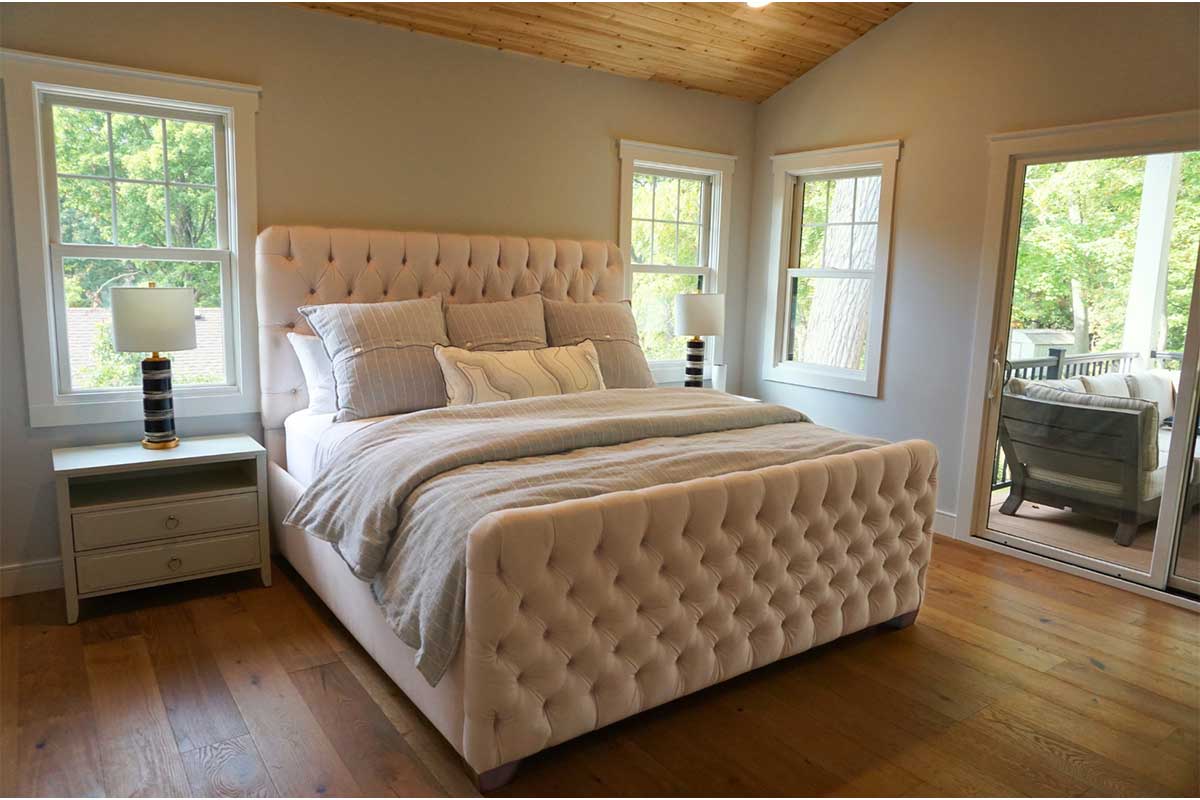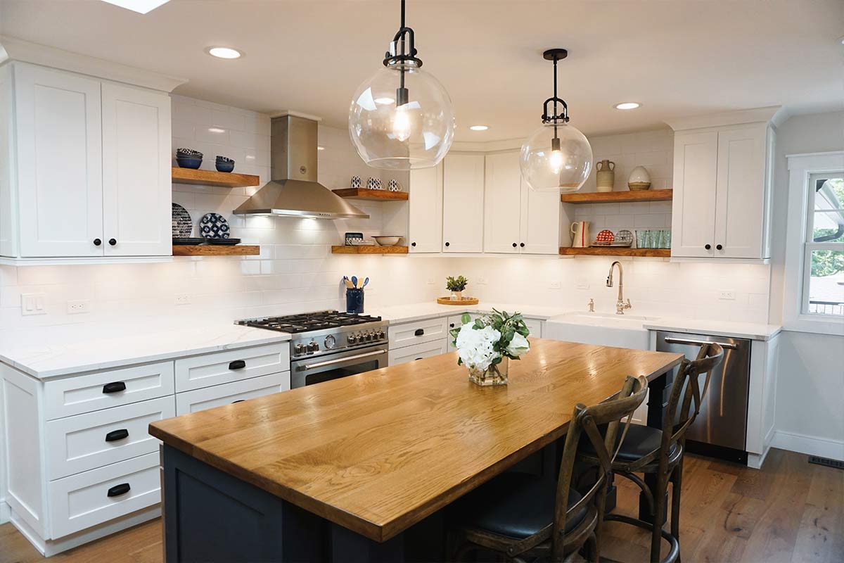 Set on a rolling, wooded, professionally landscaped half-acre, views and natural serenity surround you. Inside, the open floor plan is accented by vaulted spaces and unique finishes. A highlight is the spectacular ‘unfitted’ kitchen, featuring stainless steel Bertazzoni appliances, crisp cabinetry with natural accents, an island with seating, and a built-in banquette in the adjoining dining area for more seating.