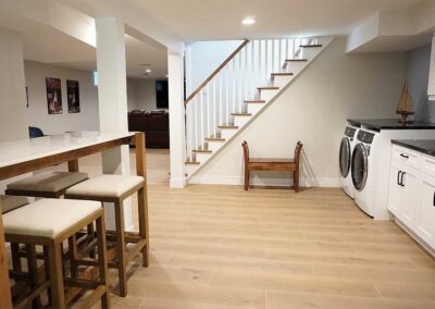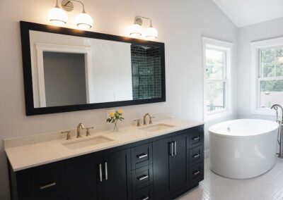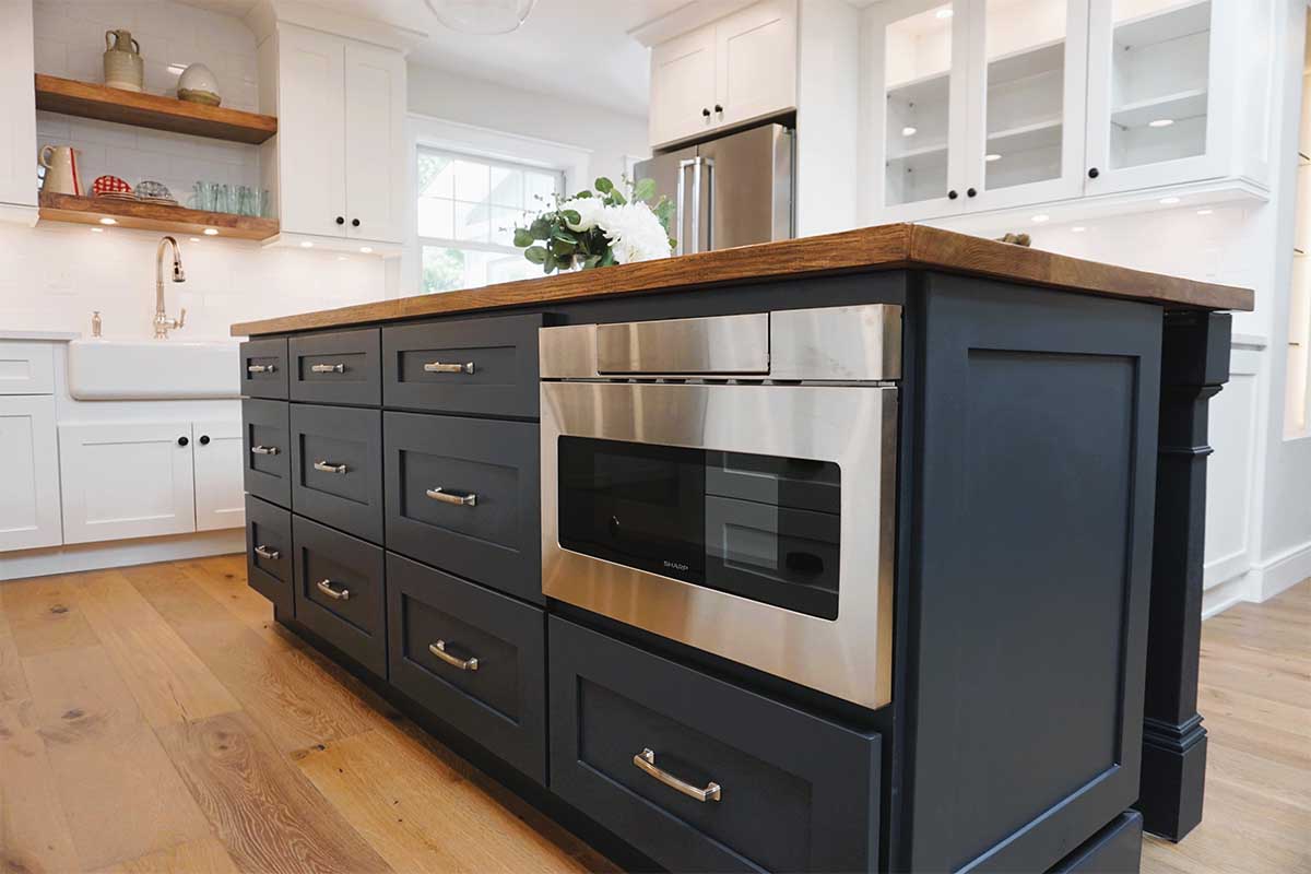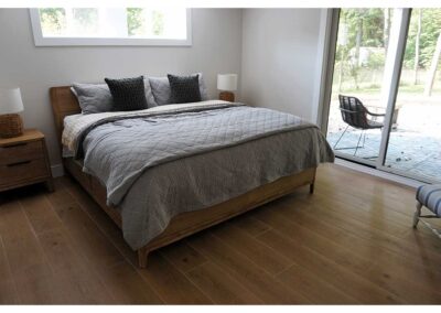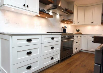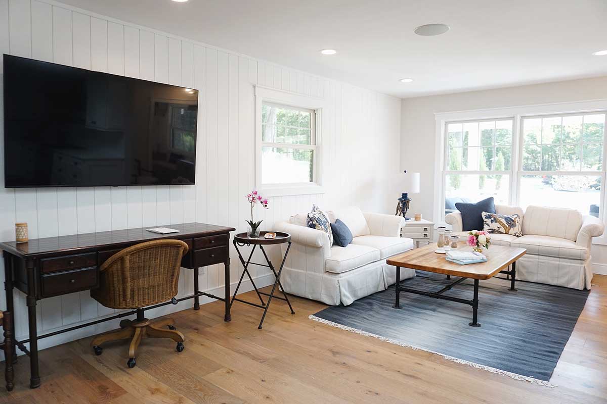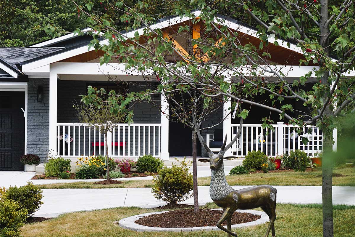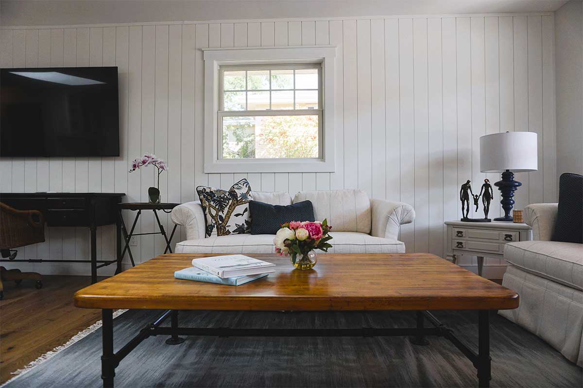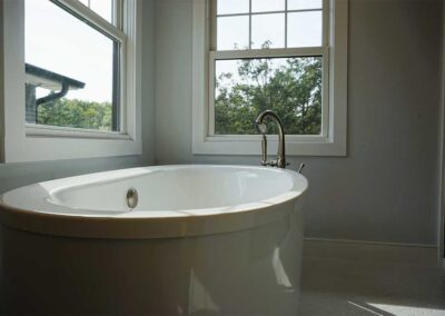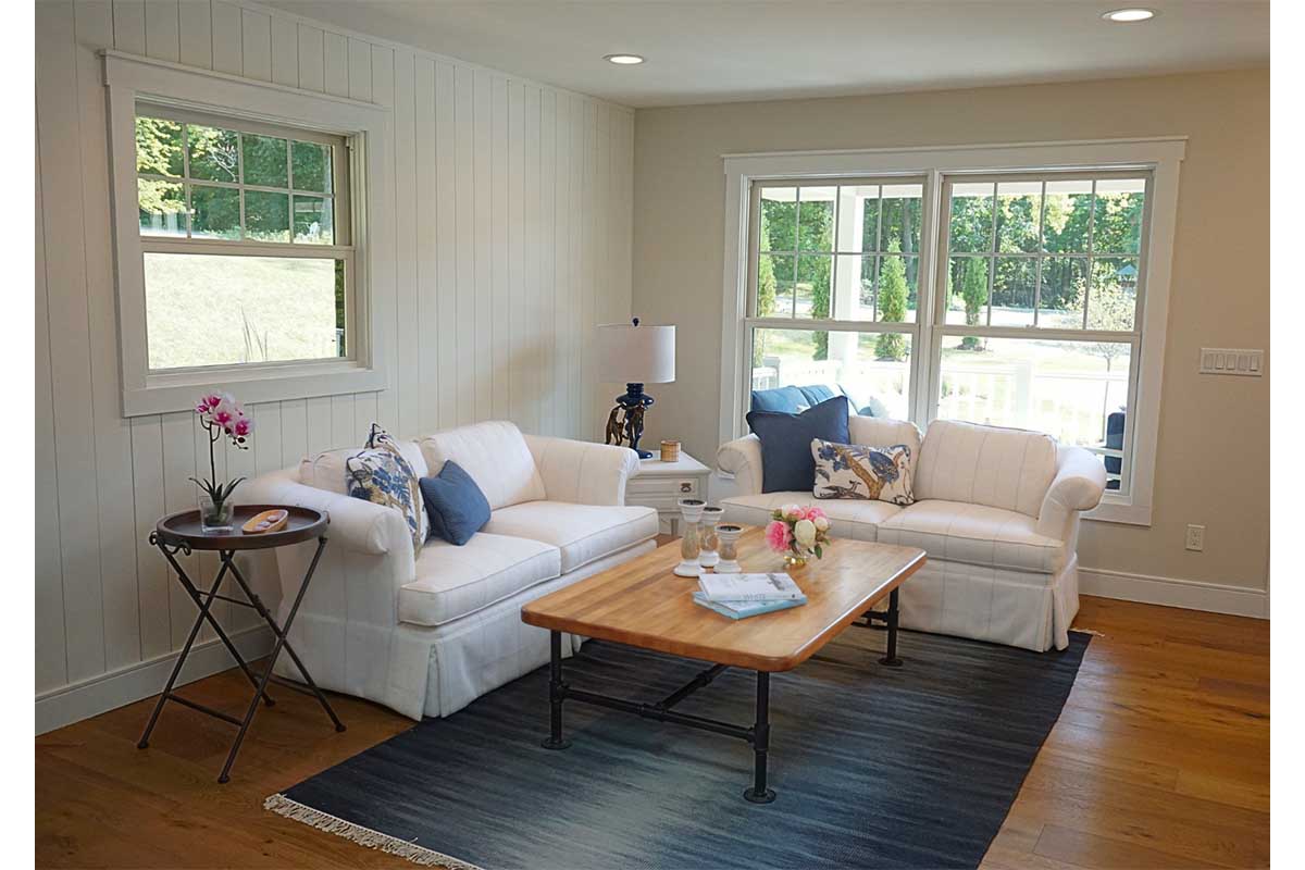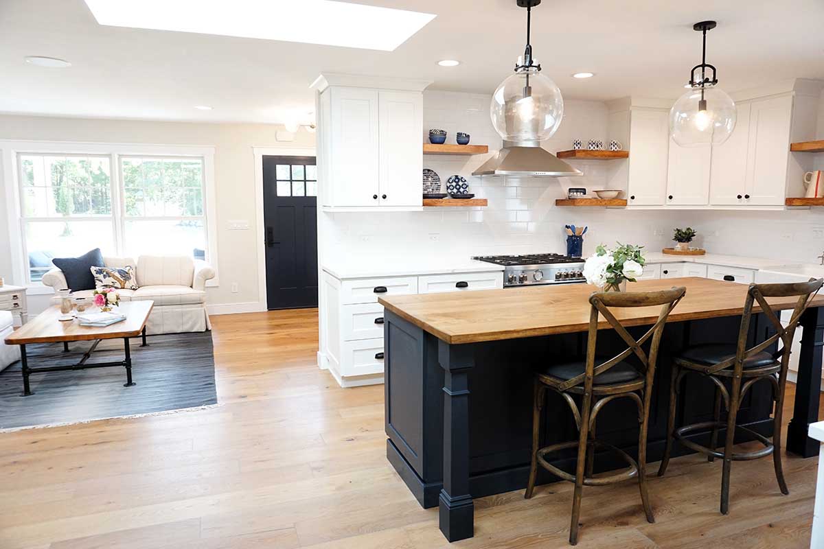 Set on a rolling, wooded, professionally landscaped half-acre, views and natural serenity surround you. Inside, the open floor plan is accented by vaulted spaces and unique finishes. A highlight is the spectacular ‘unfitted’ kitchen, featuring stainless steel Bertazzoni appliances, crisp cabinetry with natural accents, an island with seating, and a built-in banquette in the adjoining dining area for more seating.