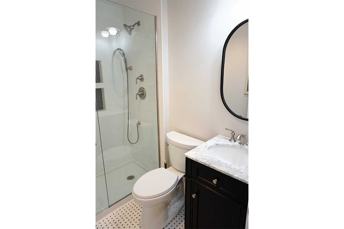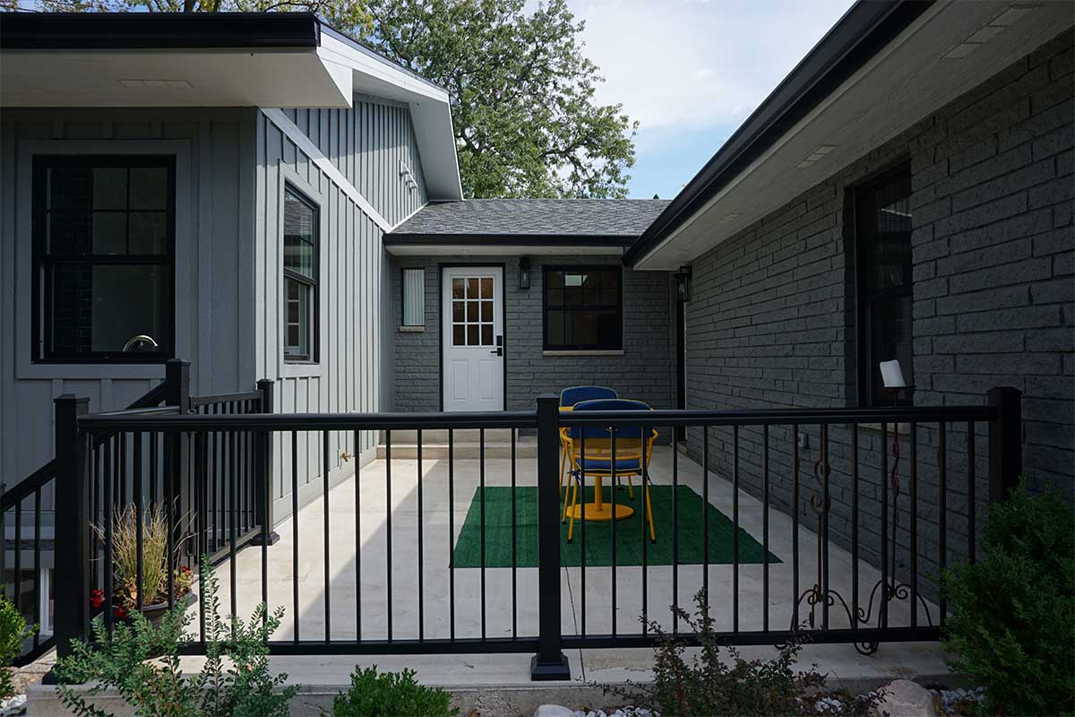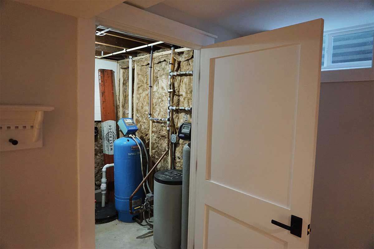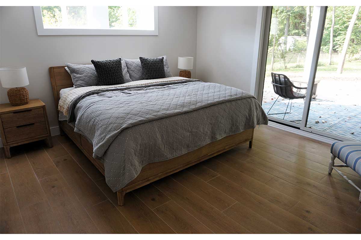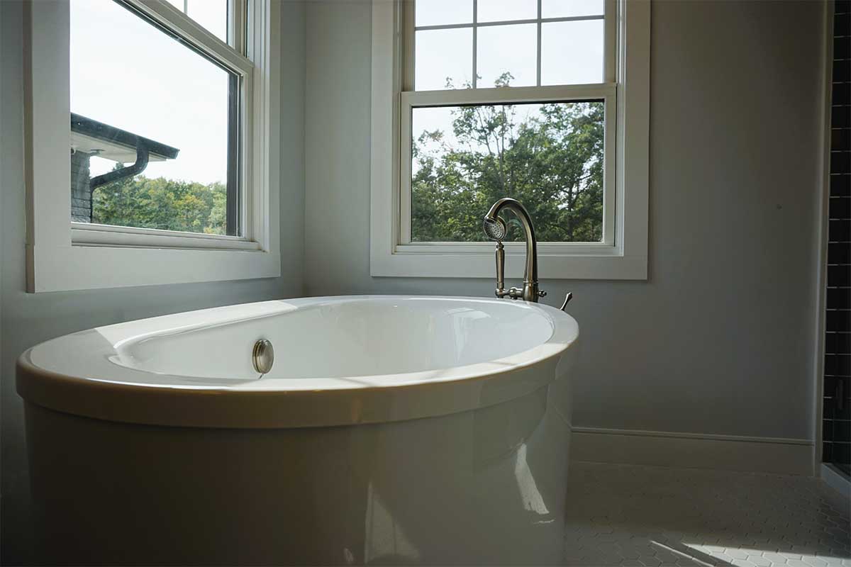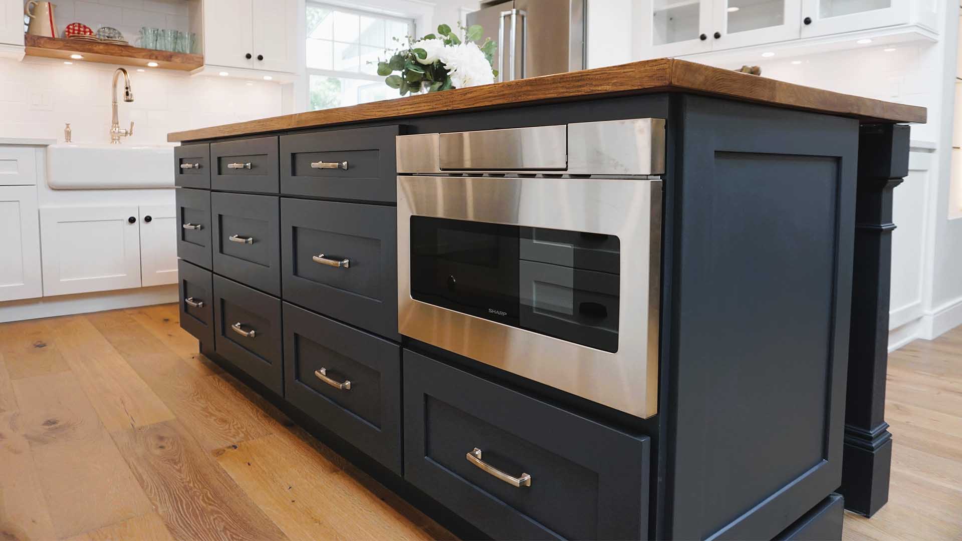 Set on a rolling, wooded, professionally landscaped half-acre, views and natural serenity surround you. Inside, the open floor plan is accented by vaulted spaces and unique finishes. A highlight is the spectacular ‘unfitted’ kitchen, featuring stainless steel Bertazzoni appliances, crisp cabinetry with natural accents, an island with seating, and a built-in banquette in the adjoining dining area for more seating.