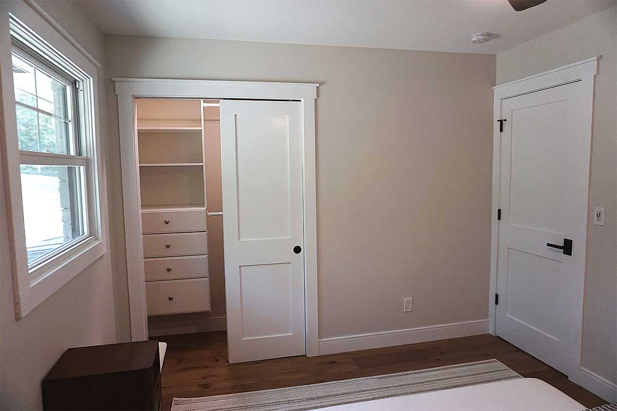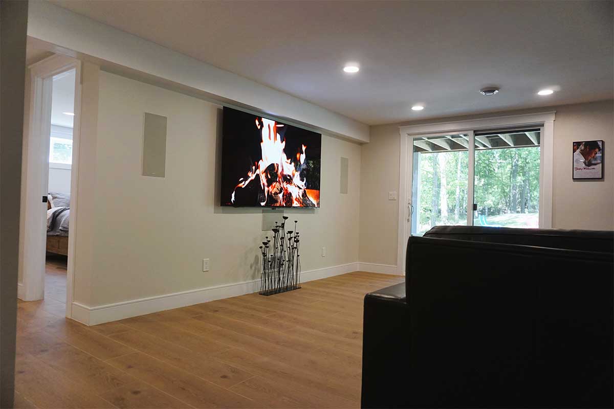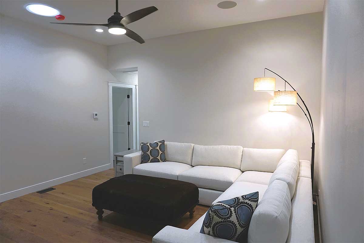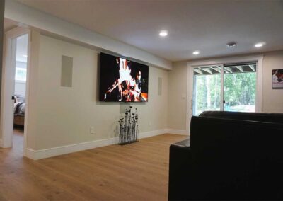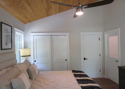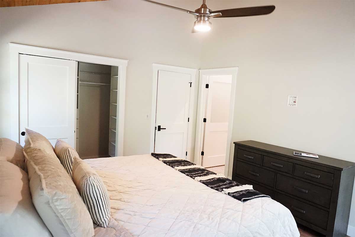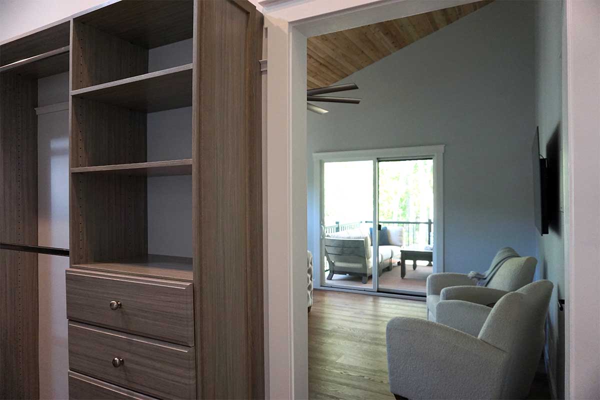 The main floor Primary Suite is vaulted, with luxe Kohler bath fixtures & accents, a huge designer closet, and access to the expansive deck. Comfort combines with convenience: from the fireplace in the family room to the all-house EZ app individual controls in each room which can also ensure TV, high-speed internet, independent music, audio, media, alarm and security system control from a phone.