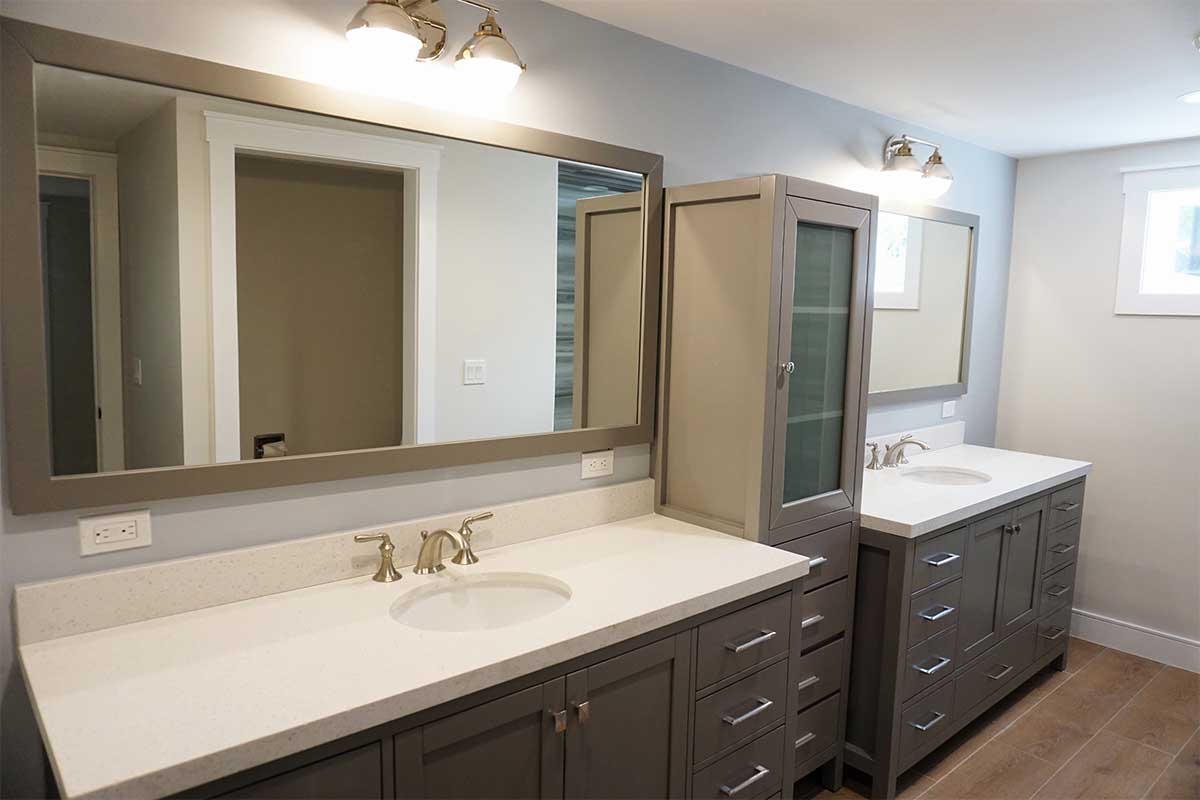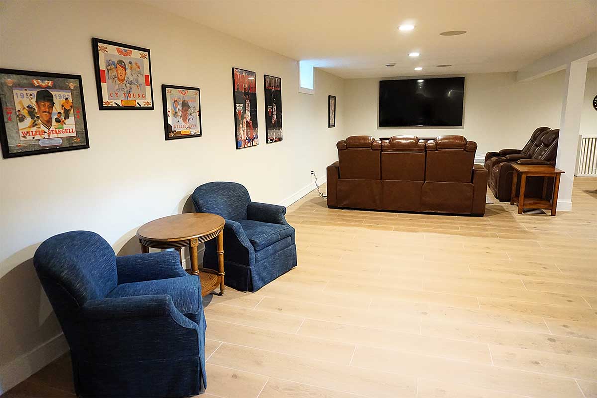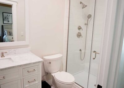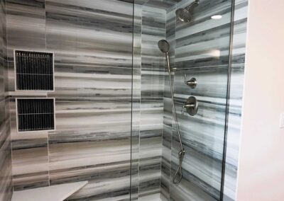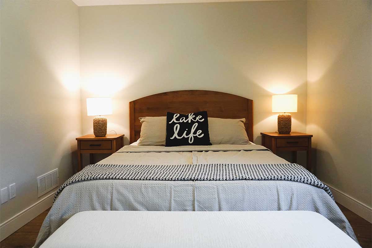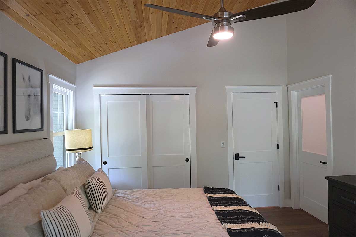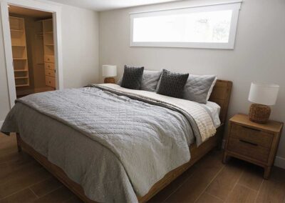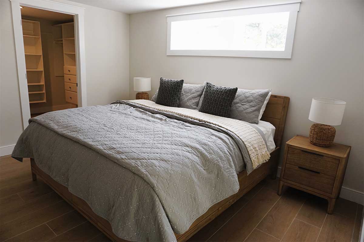The main floor Primary Suite is vaulted, with luxe Kohler bath fixtures & accents, a huge designer closet, and access to the expansive deck. Comfort combines with convenience: from the fireplace in the family room to the all-house EZ app individual controls in each room which can also ensure TV, high-speed internet, independent music, audio, media, alarm and security system control from a phone.